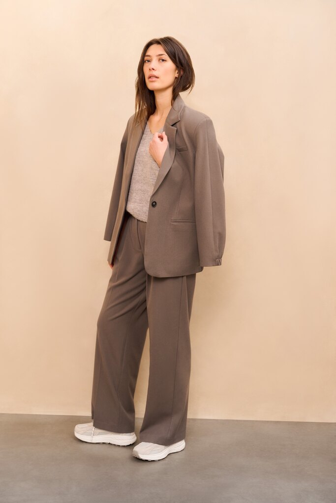 Dieser stylishe Blazer aus weichem gewebtem Stoff hat eine entspannte, lockere Passform. Er besticht durch lange Ärmel, elastische Bündchen und einen elastischen Saum auf der Rückseite. Ein klassisches Revers, ein Knopfverschluss mit einem einzelnen Knopf und Paspeltaschen sorgen für einen raffinierten Look. Die perfekte Wahl für ein modernes, lässiges Outfit mit einer eleganten Note.