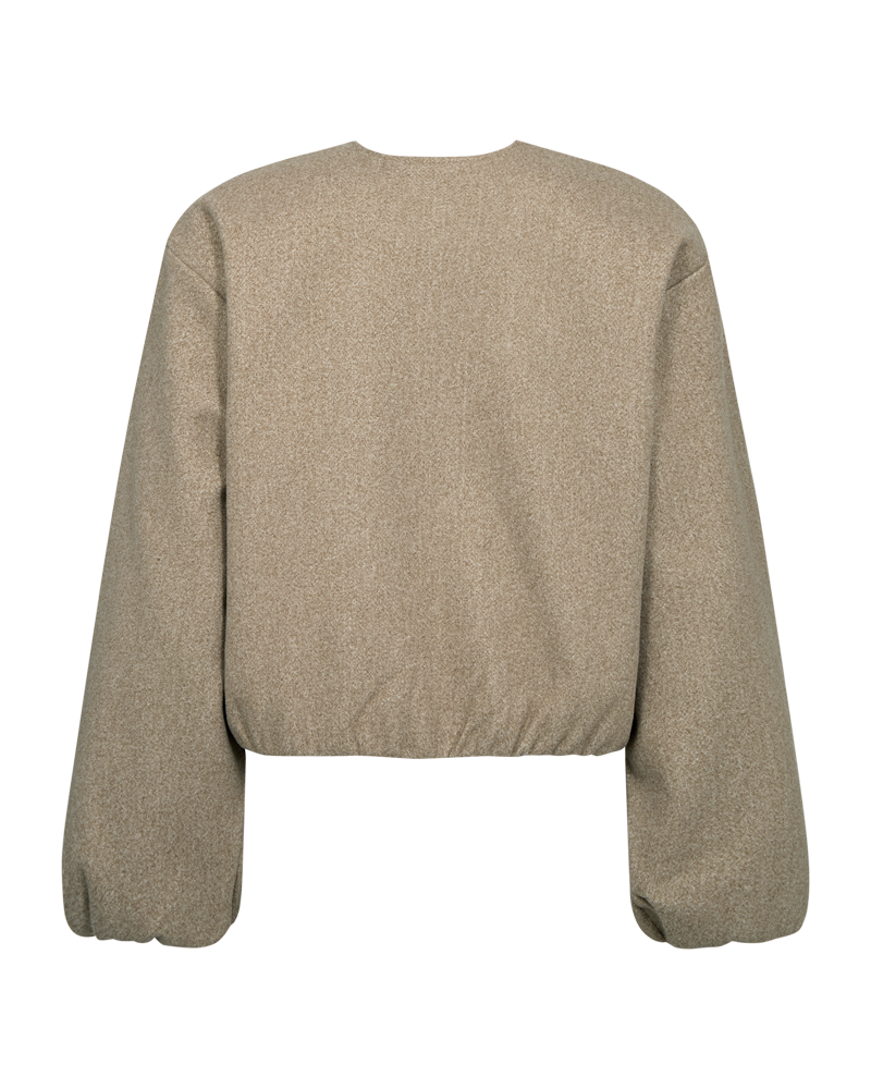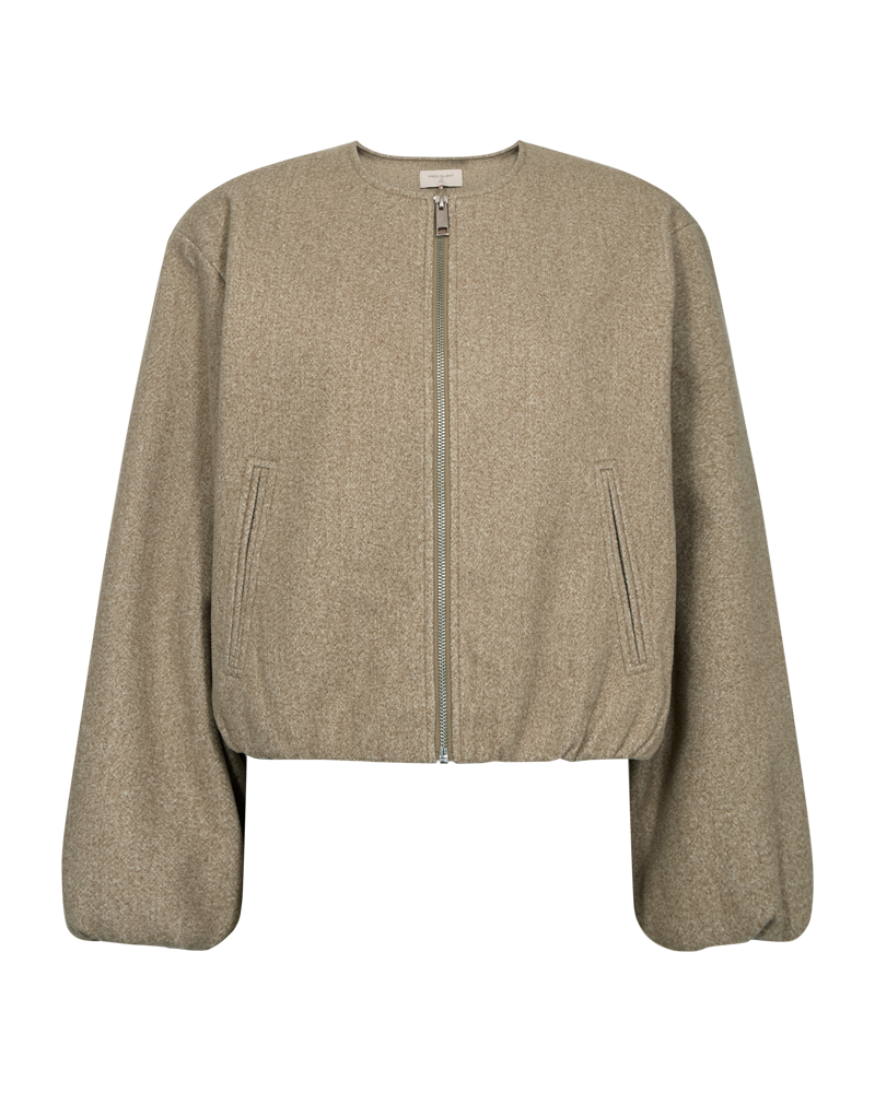 Jacke von Freequent aus weichem Material mit Futter. Die Jacke hat einen Reißverschluss vorne, Seitentaschen, einen Rundhalsausschnitt sowie einen elastischen Saum und lange Ärmel, die einen eleganten Balloneffekt erzeugen.