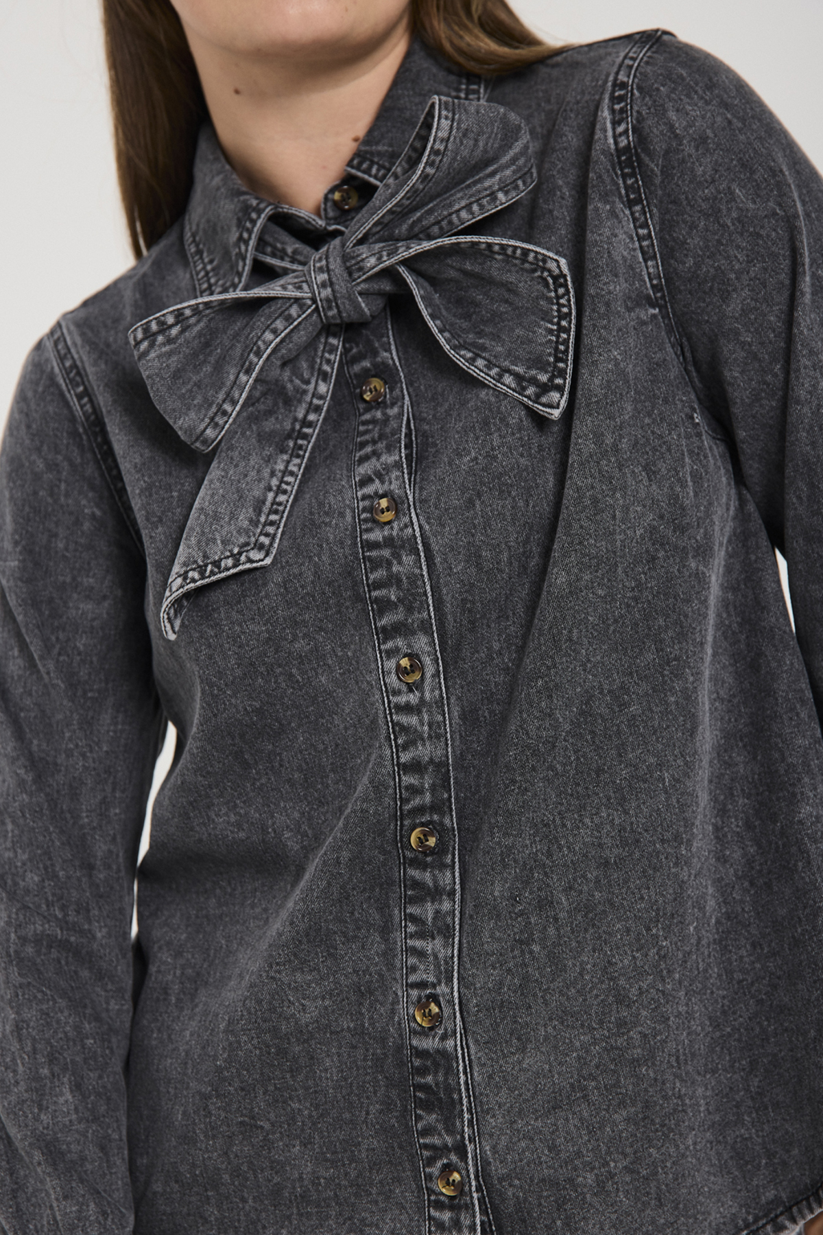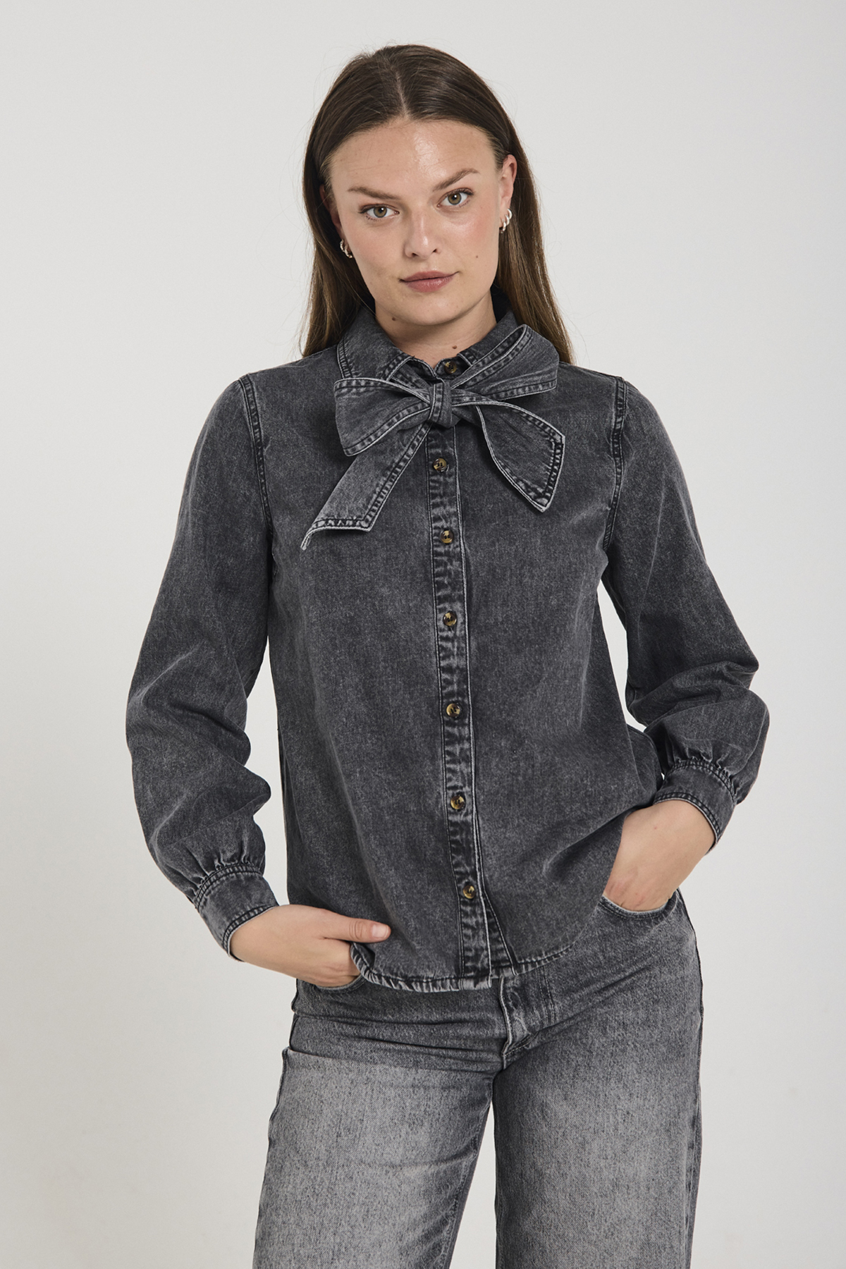 Tolle Denim Bluse mit Schleifen Detail, welches auch als Taillen-Gürtel genutzt werden kann.