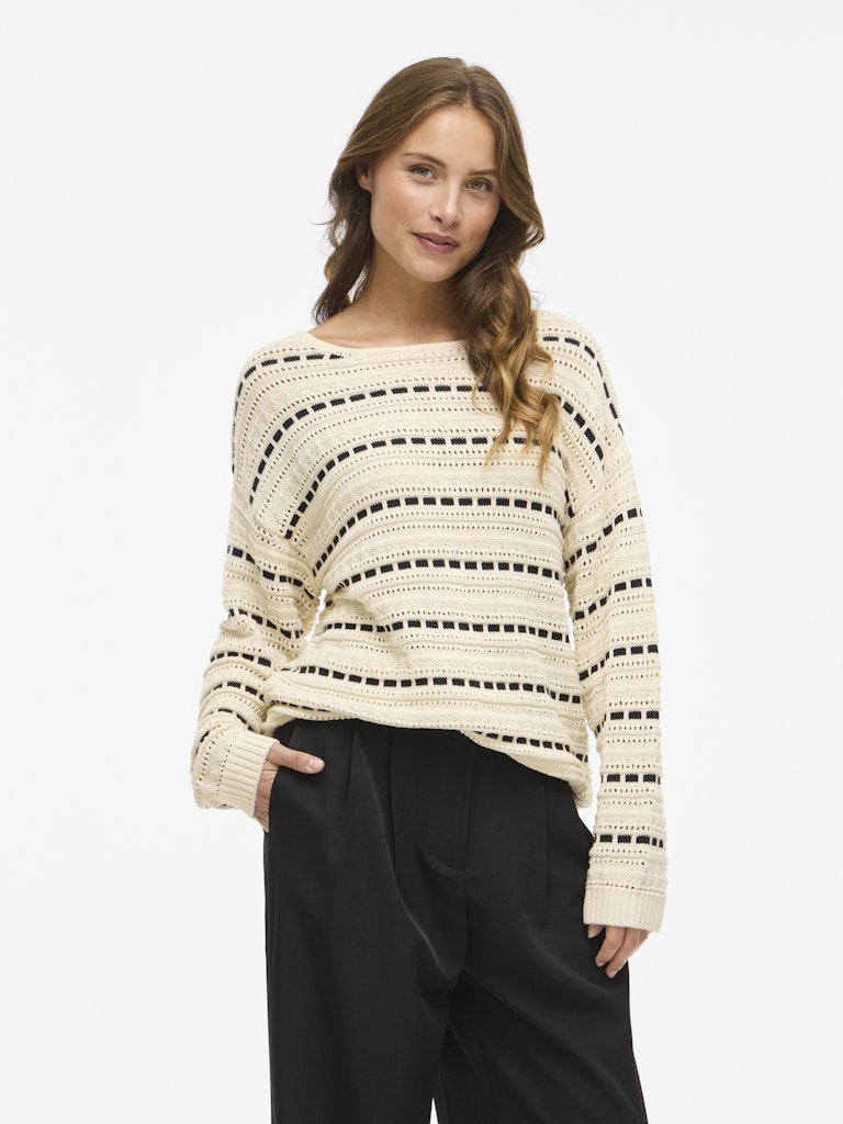 VILA GmbH / Damen-Bluse / VIMARIAN O-NECK POINTELLE STRIPE KN