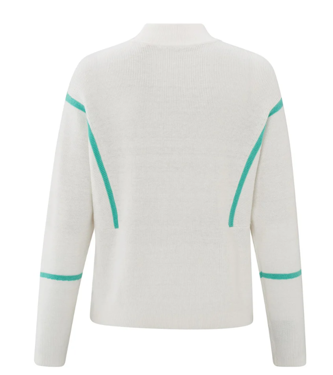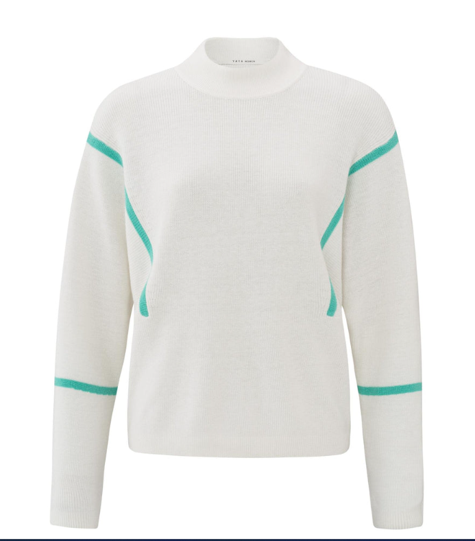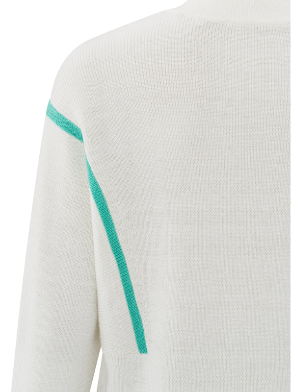 Dieser elegante Pullover präsentiert einen Stehkragen, lange Ärmel und attraktive Streifendetails an den Schultern und Ärmeln. Das hochwertige Material und die modernen Details sorgen für einen raffinierten Look. Dieses Stück ist dank seiner geraden Passform äußerst vielseitig und lässt sich zu lässigen und schicken Outfits tragen.