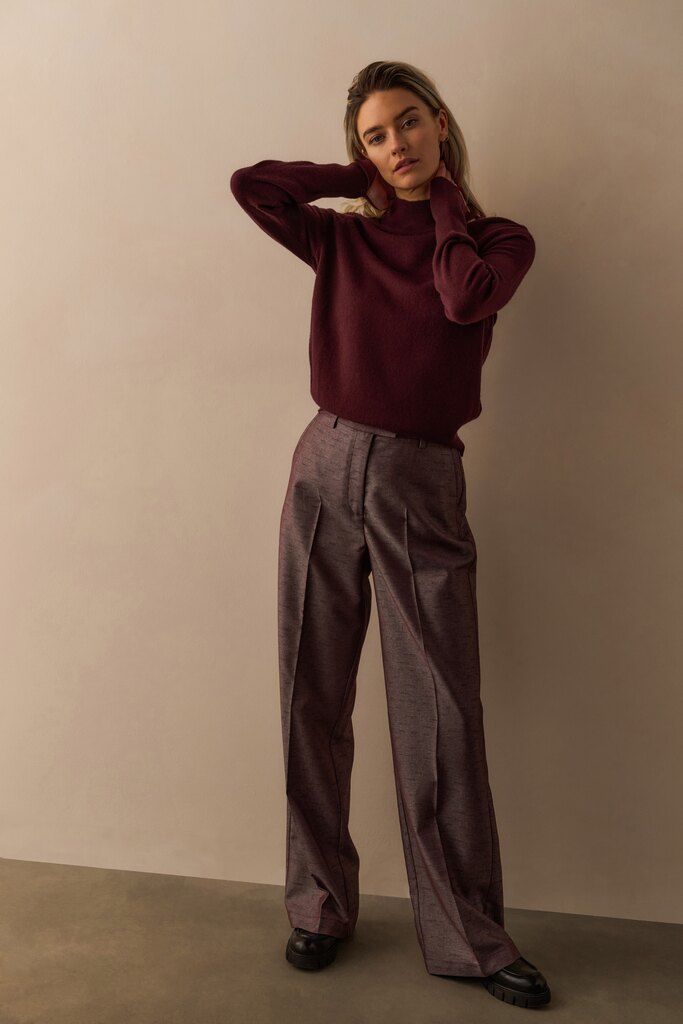 Dieser Feinstrickpullover aus einer weichen Wollmischung begeistert mit raffinierten Schlitzen an der Unterseite des Stehkragens. Er hat lange Ärmel, gerippte Bündchen mit dezenten Schlitzen und eine eng anliegende Silhouette. Dank seiner normalen Länge und seinen feinen Details eignet sich der Pullover perfekt für ein elegantes und gleichzeitig bequemes Alltagsoutfit.