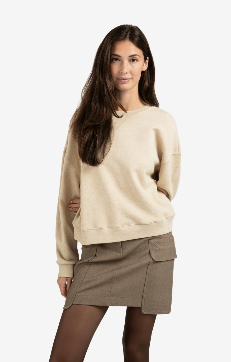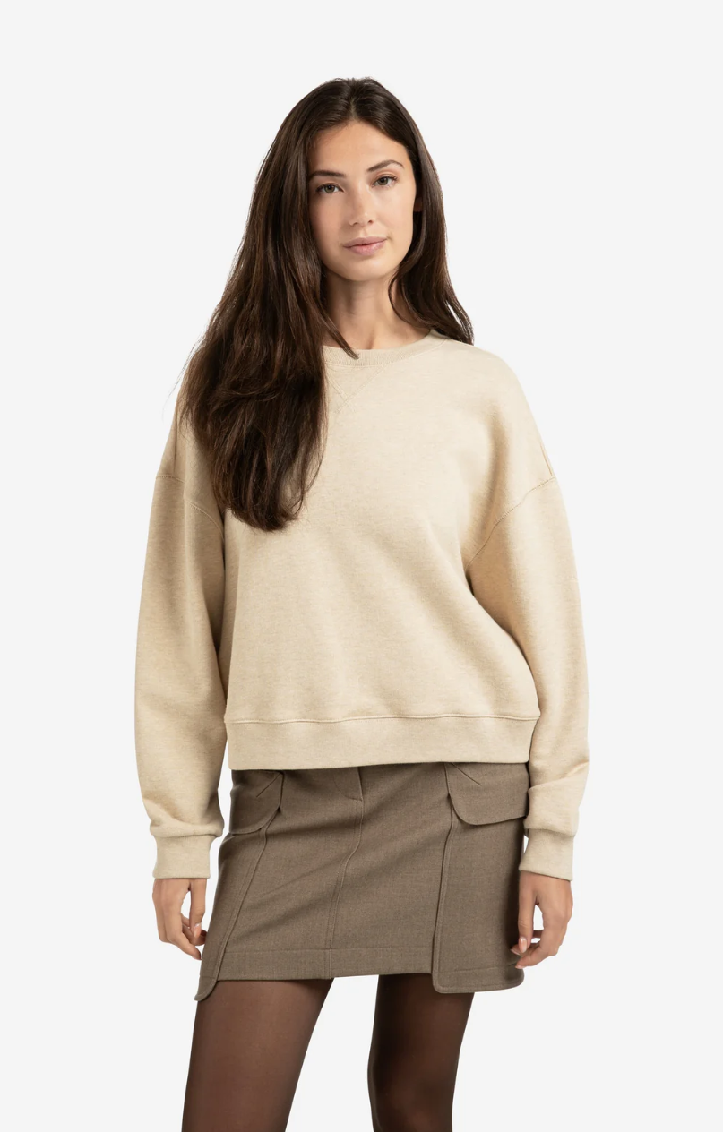 Dieser weiche Pullover hat einen Rundhalsausschnitt, überschnittene Schultern und eine bequeme Oversize-Passform. Er besteht aus einer weichen Baumwollmischung und ist an Ausschnitt, Bündchen und Saum gerippt. Das dezente V-Detail am Ausschnitt verleiht ihm eine sportliche Note. Ein vielseitiges Basic, das sich perfekt für lässige, moderne Looks eignet.