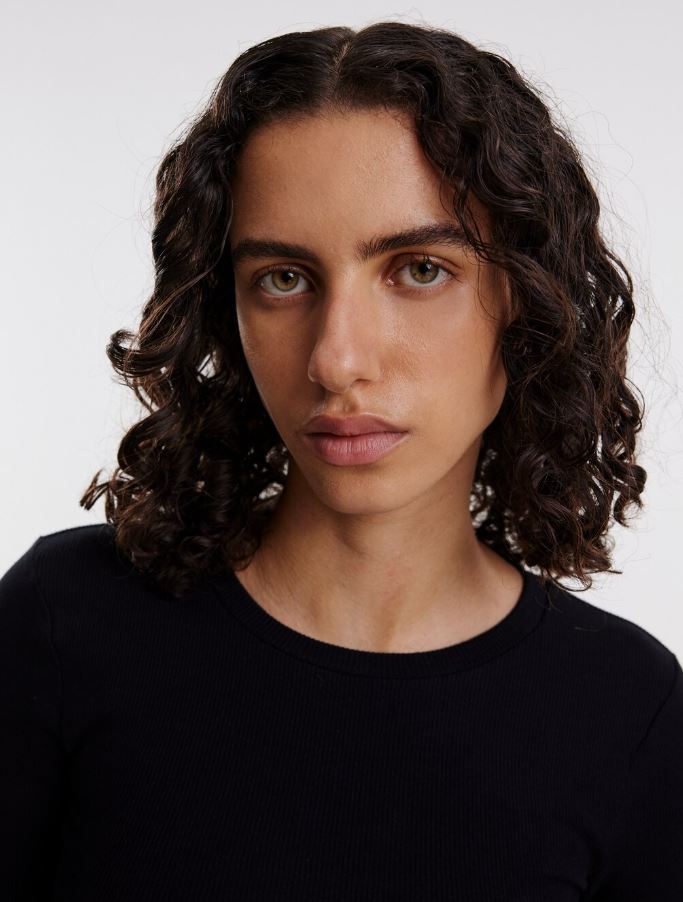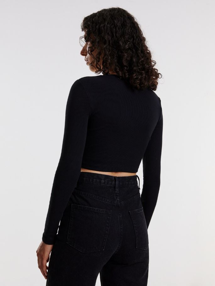 schmal geschnittenes Langarm-Shirt in Cropped Länge mit Rundhalsausschnitt
