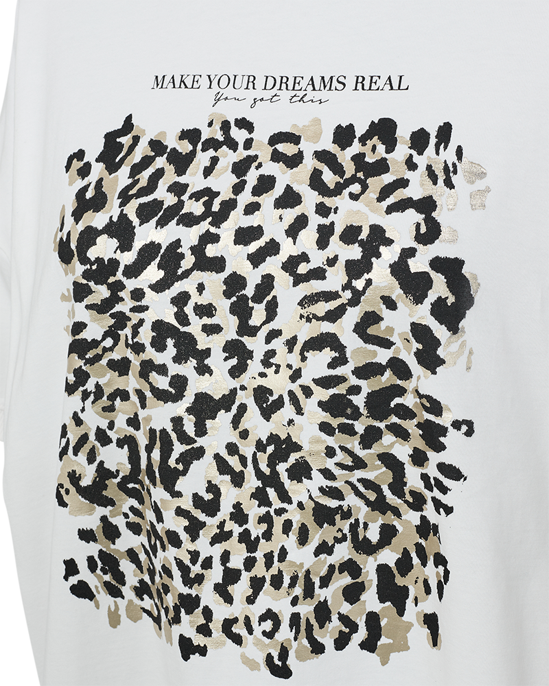 T-Shirt von Freequent aus weichem Material mit großem Frontprint. Das T-Shirt hat einen runden Ausschnitt mit Rippbündchen, Seitenschlitze, einen asymmetrischen Saum sowie kurze Ärmel mit überschnittenen Schultern – Details, die zusammen eine lockere Passform ergeben.