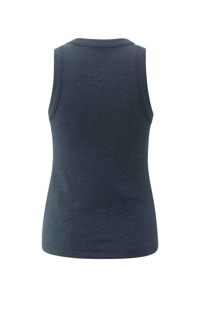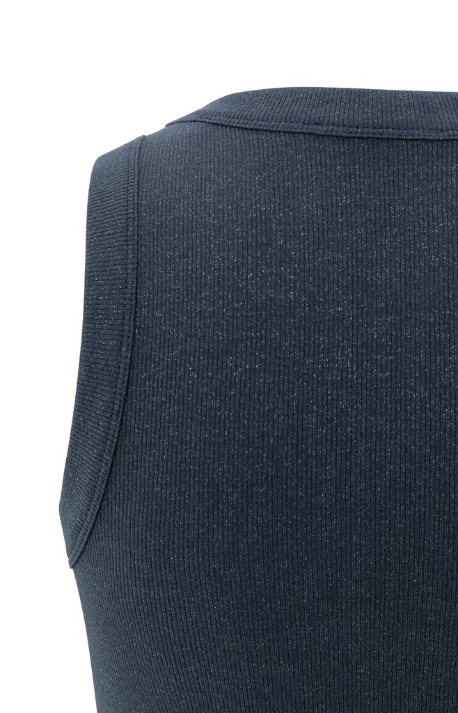 Dieses bequeme Singlet ist aus Rippstrick gefertigt und mit weichem Lurex-Glitzer versehen, der für einen dezenten Schimmer sorgt. Es hat einen Rundhalsausschnitt und eine figurbetonte Passform, die sich wunderbar an den Körper schmiegt. Dank der dehnbaren Qualität eignet es sich perfekt für lässige und mehrlagige Looks.