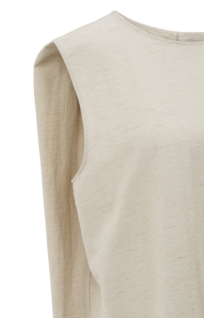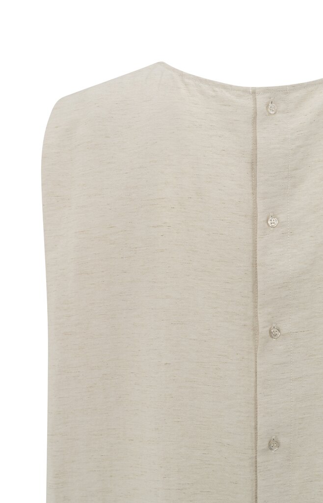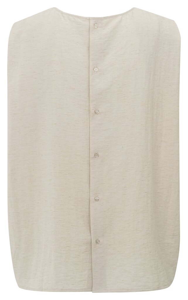Dieses ärmellose Oberteil aus weichem, meliertem Jersey besticht durch eine eng anliegende Passform und einen Rundhalsausschnitt. Auf der Rückseite hat es einen stylishen Knopfverschluss, der dem schlichten Design eine dezent überraschende Note verleiht. Dank seinem bequemen Stoff ist es die perfekte Wahl für einen lässigen und gleichzeitig raffinierten Look.