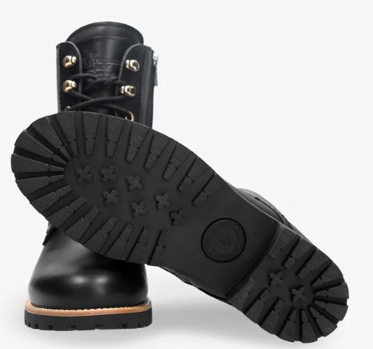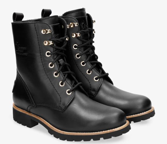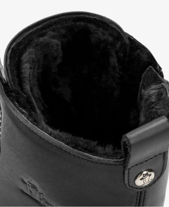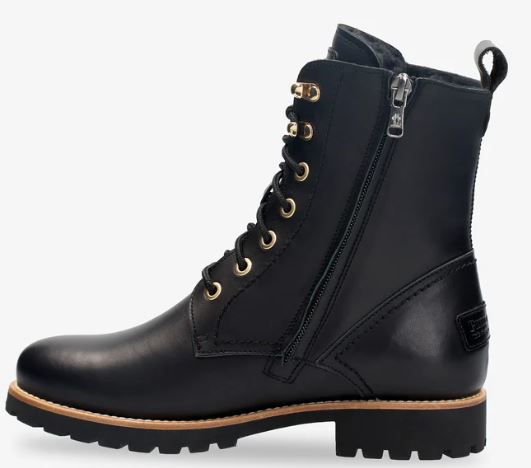 Flacher Damenstiefel. WATERPROOF Nappaleder in Schwarz. Schnürverschluss und Reißverschluss. Lammfellinnenfutter. Anatomisch herausnehmbare Innensohle. Flexible und robuste Sohle aus Naturkautschuk. Schafthöhe: 16 cm. Absatzhöhe: 4 cm. 100% Hergestellt in Spanien.
