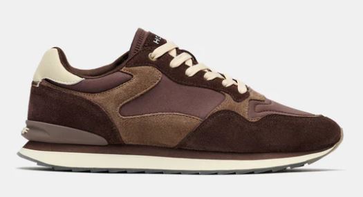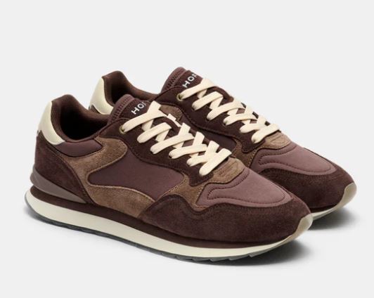 Sneaker im Retro-Stil in einer Kombination aus Farben und Materialien. Logodetail an der Ferse. Bedruckte Sohle. Schnürverschluss.