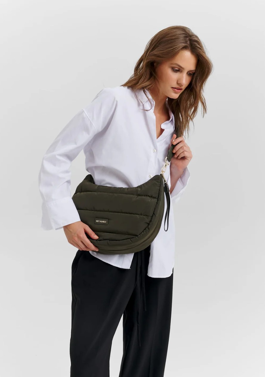 Mit ihrem großzügig verstellbaren & abnehmbaren Signature Strap kannst du sie bequem crossbody tragen oder mit deinen Lieblings-Hey Marly-Straps individuell stylen. Das clevere Innenleben mit zusätzlichen Fächern sorgt für Ordnung, während der variable Fächerboden das Volumen anpasst, sodass du alles Wichtige immer dabeihast.