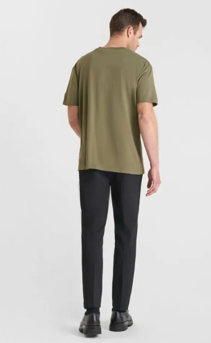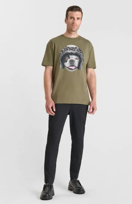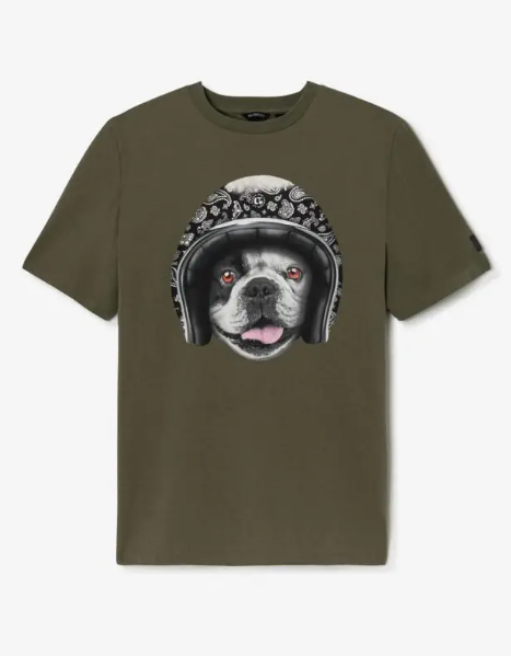 Kurzärmeliges, khakifarbenes T-Shirt mit Fantasiedruck.